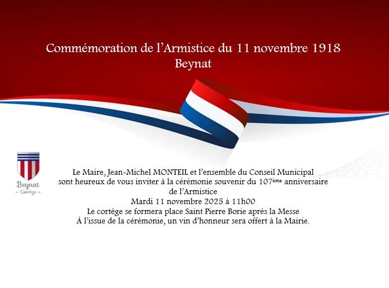 La commémoration de l’Armistice 1918 aura lieu mardi 11 novembre 2025 à 11h.