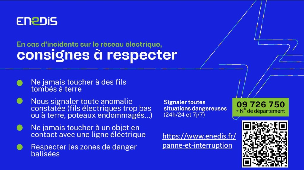 ENEDIS : EN CAS D'INCIDENTS SUR LE RÉSEAU ÉLECTRIQUE