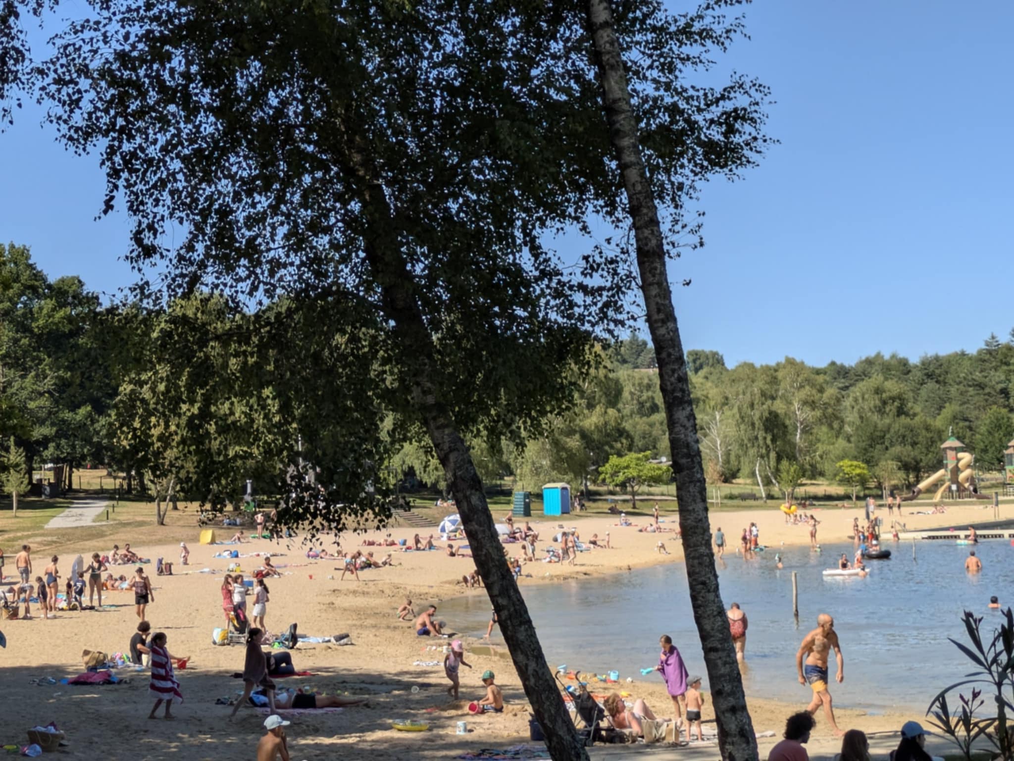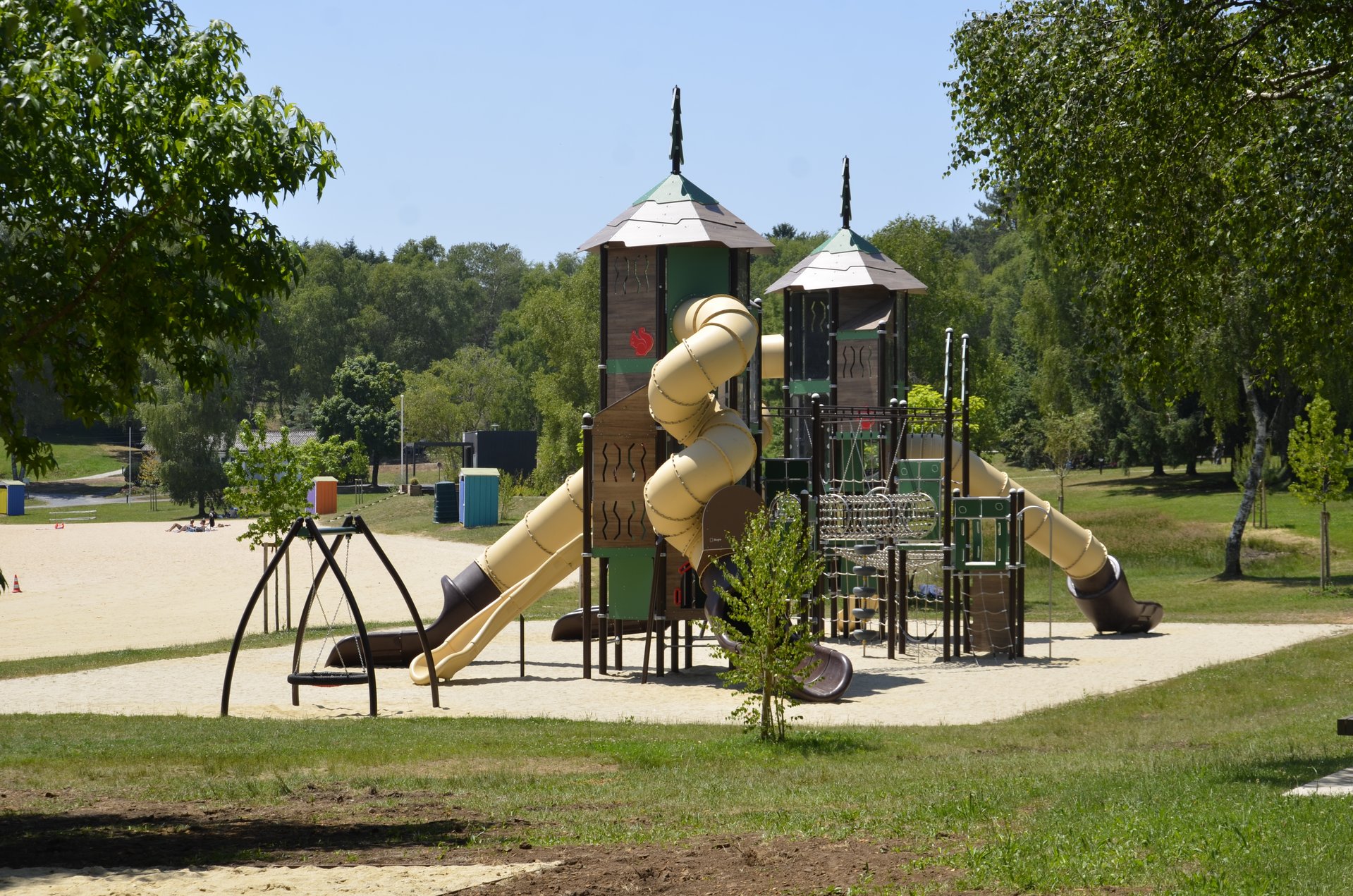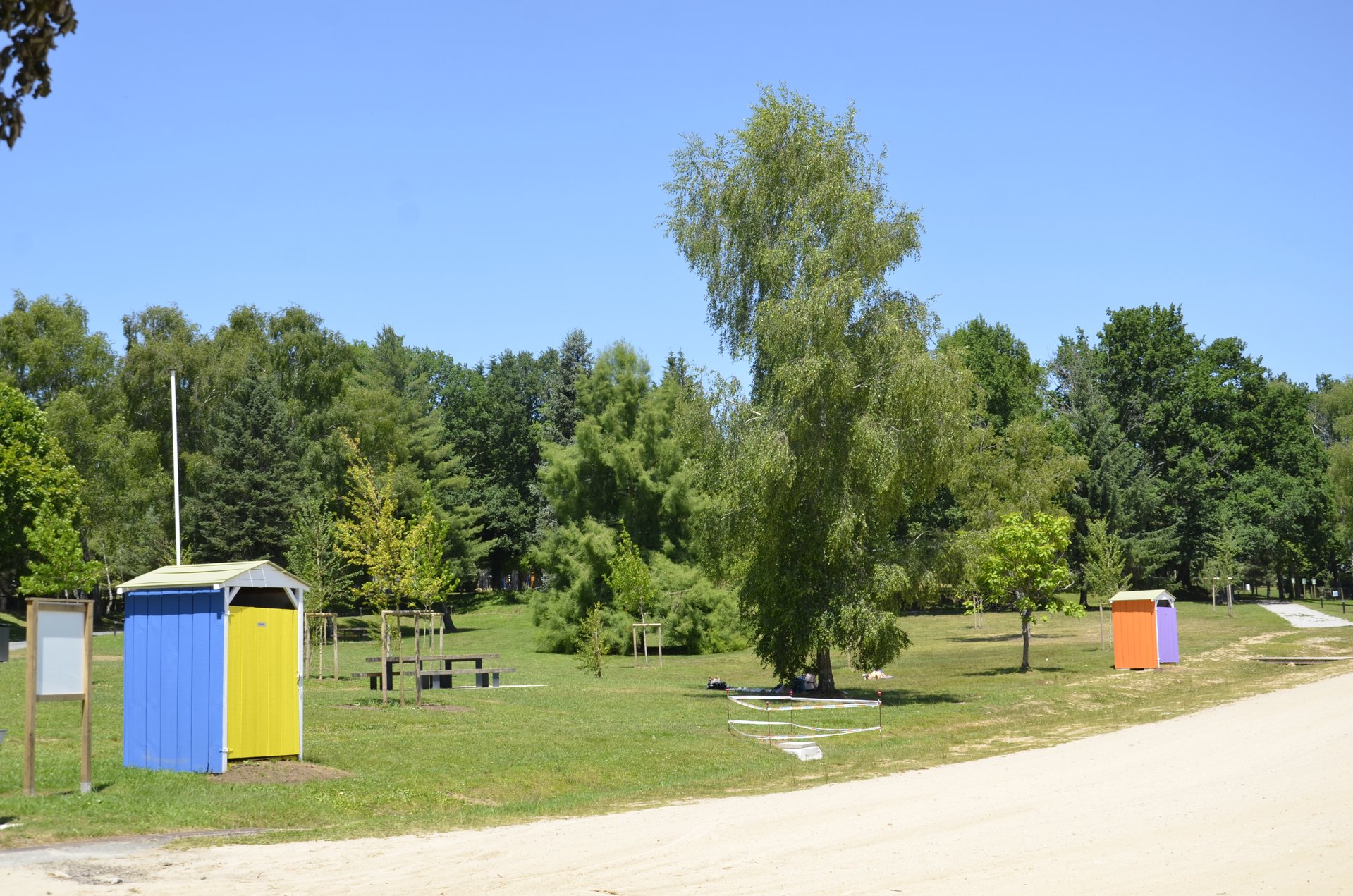 Au niveau de la plage, une douche publique avec accès PMR a été construite au niveau du local des surveillants de baignade. Des cabines/vestiaires colorées ont été disposées sur le site, entre le nouvel espace de jeu jusqu’au ponton des pédalos qui peuvent être loués. Leur utilisation doit se fait dans le respect des zones de plantations (ilots végétalisés, nénuphars aux abords de l’étang). Des poursuites peuvent être engagées en cas de dégradation.